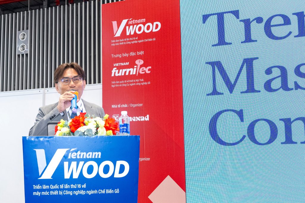 In discussions about high-rise timber architecture, much of the attention often focuses on CLT or on iconic timber buildings around the world. However, the presentation delivered by Mr. Cliff Chang, Director of SK Global Co. Ltd, at Vietnam Wood 2025 offered a different perspective: to understand how timber buildings can rise to many storeys, one must look at the manufacturing technologies behind structural wood—particularly glulam, one of the most critical load-bearing components of mass timber systems.