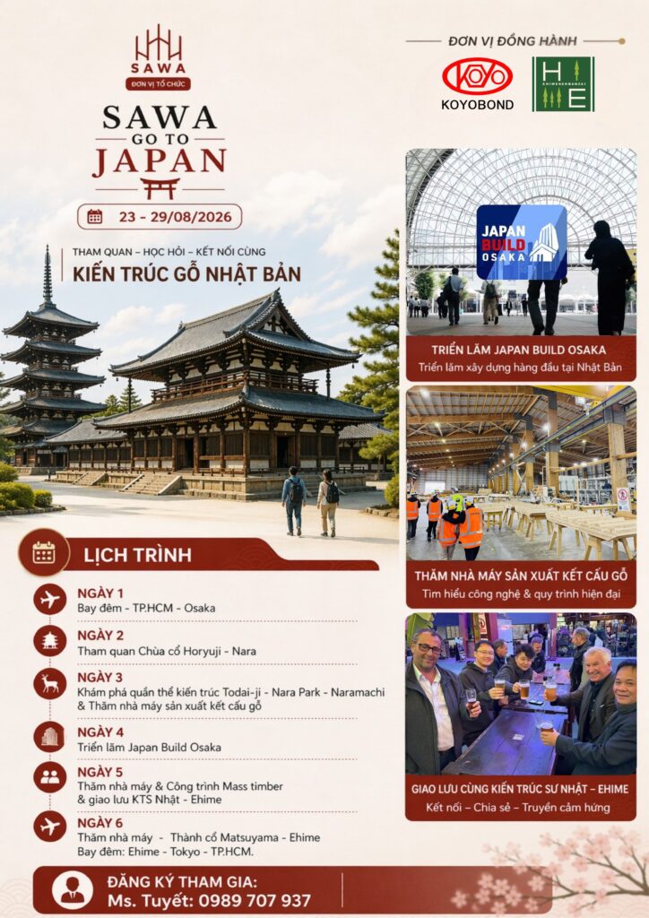 Nhằm tạo điều kiện cho cộng đồng doanh nghiệp, kiến trúc sư và các bên liên quan trong ngành tiếp cận thực tiễn quốc tế, Hội Gỗ Xây Dựng TP. Hồ Chí Minh (SAWA) tổ chức chương trình “SAWA GO TO JAPAN 2026” – chuyến công tác kết hợp nghiên cứu, khảo sát và kết nối tại Nhật Bản.